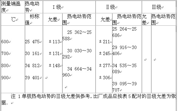 2經(jīng)供需雙方協(xié)議,并在訂貨合同中注明,允許正負極配對供貨,配對熱電動勢及允差應符合表5規(guī)定。