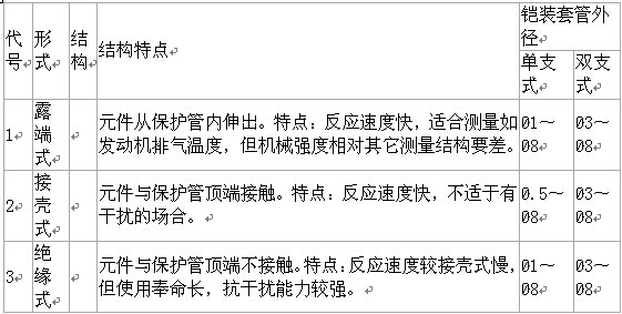 鎧裝式熱電偶具有測量溫度范圍大、反應(yīng)速度快,動態(tài)誤差小、可彎曲安裝,機械強度高,耐壓性能好等特點。鎧裝式熱電偶一般可以測量0~1300℃范圍內(nèi)的氣體、液體和蒸汽及固體表面或內(nèi)部溫度。鎧裝式熱電偶可以配套數(shù)字儀表、記錄調(diào)節(jié)儀表、PLC、數(shù)據(jù)采集器或計算機使用,作為新一代的溫度傳感器,它可廣泛用于冶金、石油、化工、電力、輕工、紡織、食品、國防及科研等各部門。
