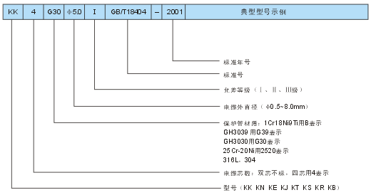 1.3 鎧裝熱電偶電纜型號(hào)標(biāo)注方法: 1-2